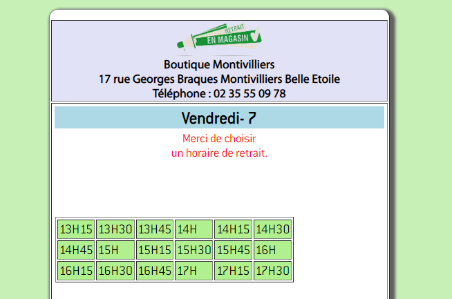 Vous devez choisir votre lieu de retrait avant d'ajouter un produit dans votre panier.